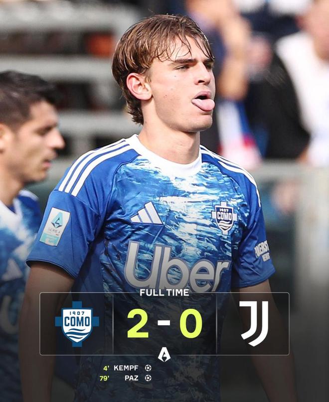 意甲第7轮爆出重磅冷门,科莫坐镇主场,2-0完胜意甲豪门尤文图斯,不仅送给对手6场不胜,法布雷加斯的球队更是积12分跃居意甲积分榜第五,仅仅比领头羊国际米兰少3分,意甲小黑马已经诞生。其中,21岁的阿根廷天才尼科·帕斯闪耀全场,1传1射导演胜利,而场边,温格与亨利亲眼见证了弟子法布雷加斯执教生涯的高光一夜。